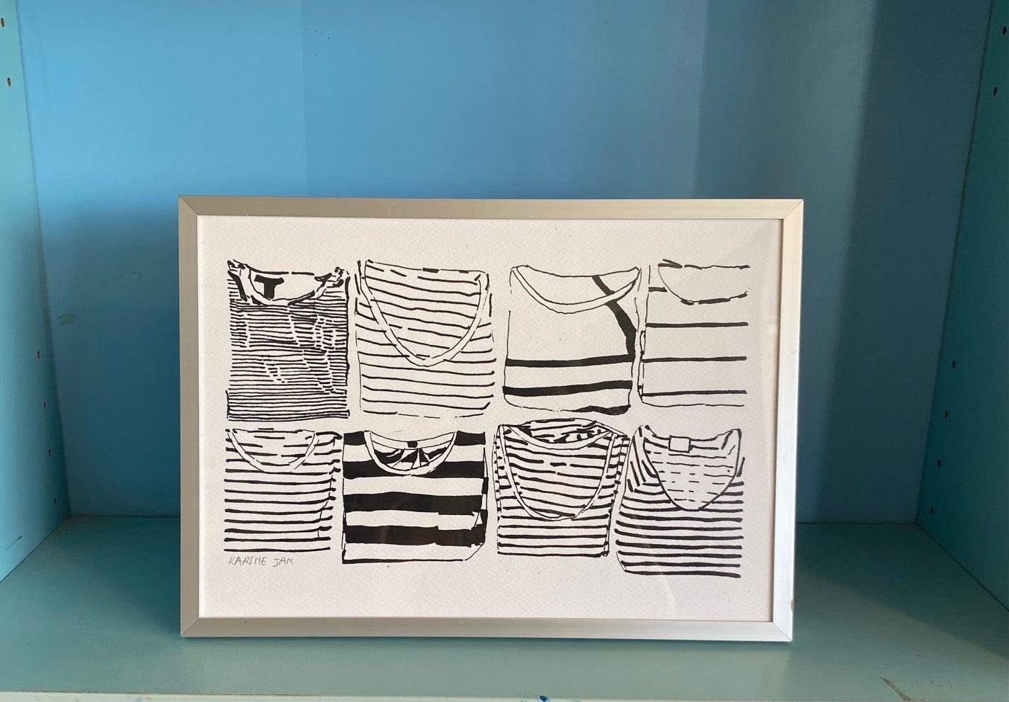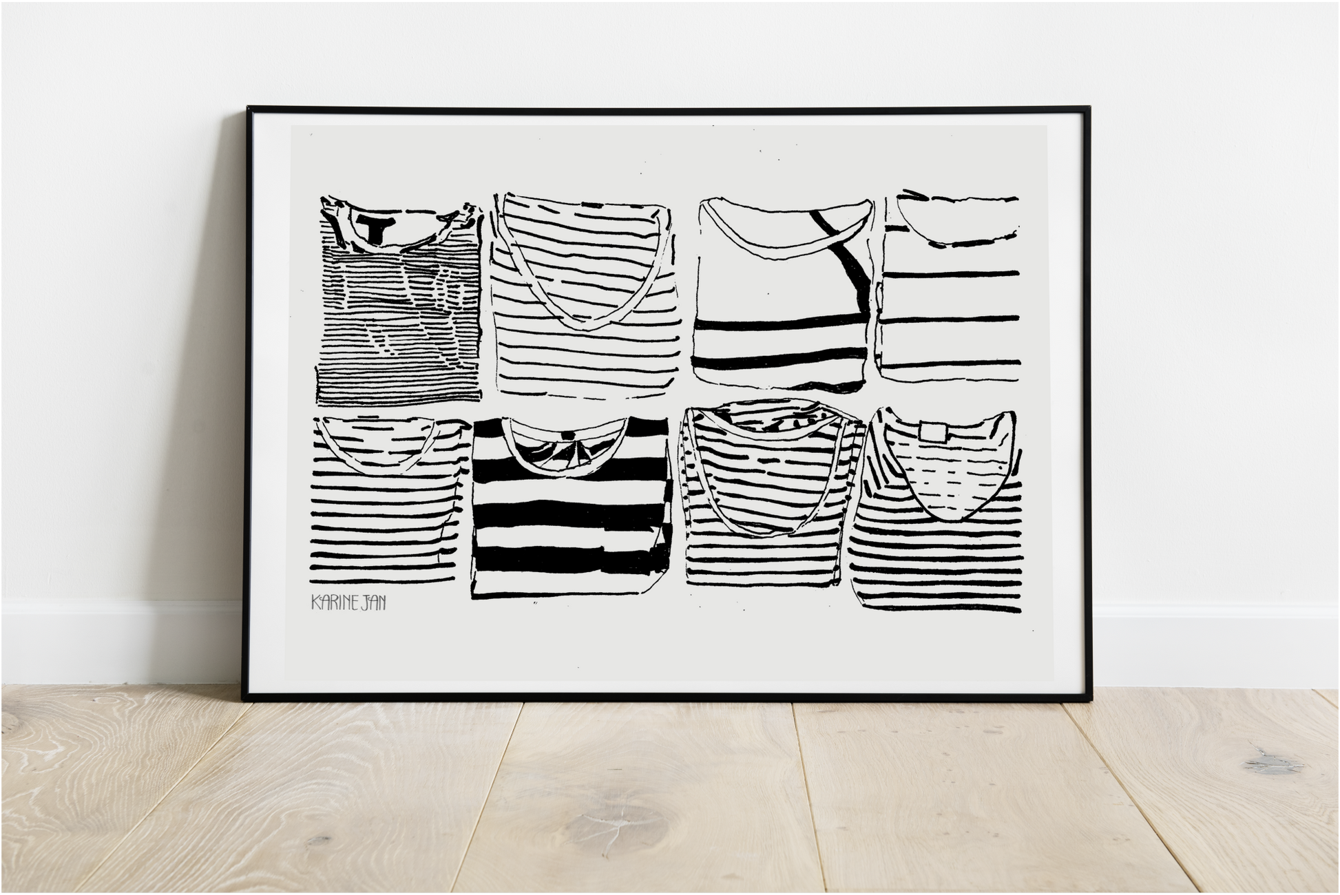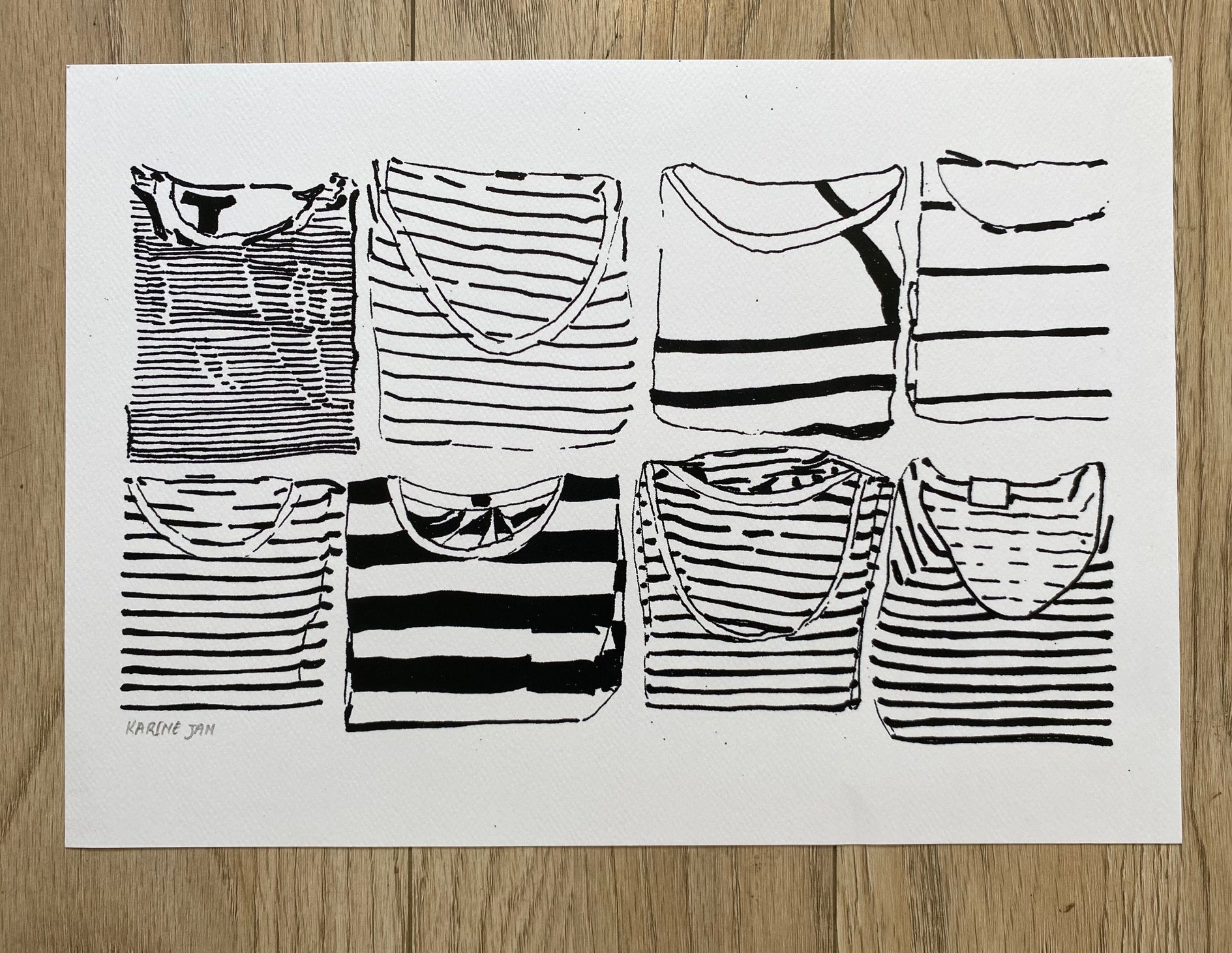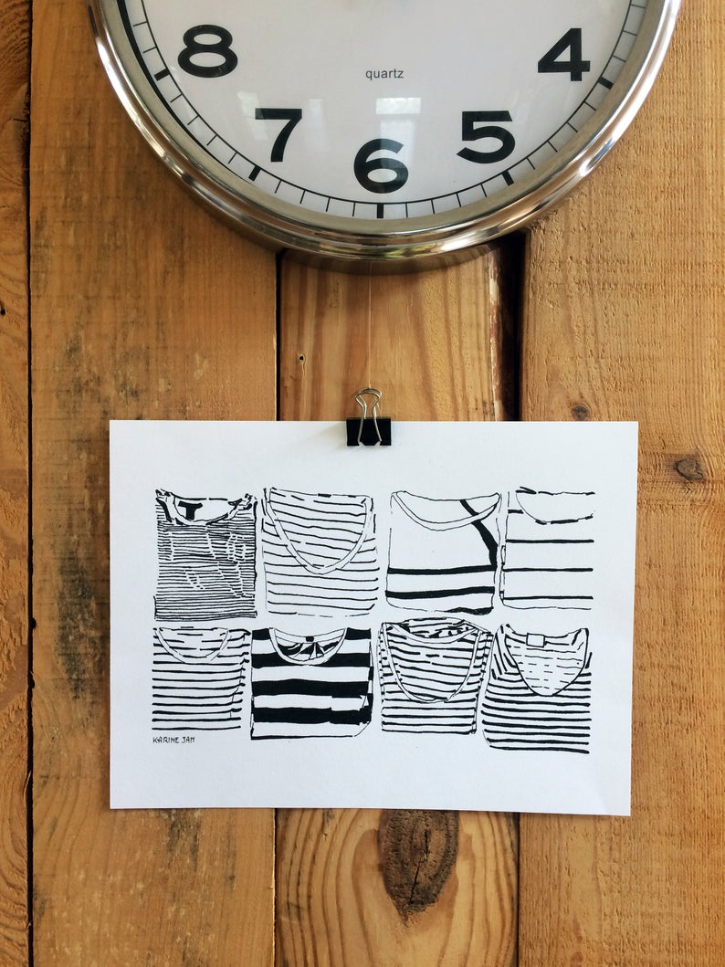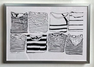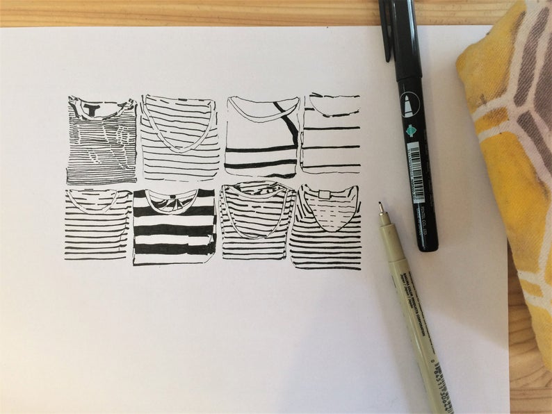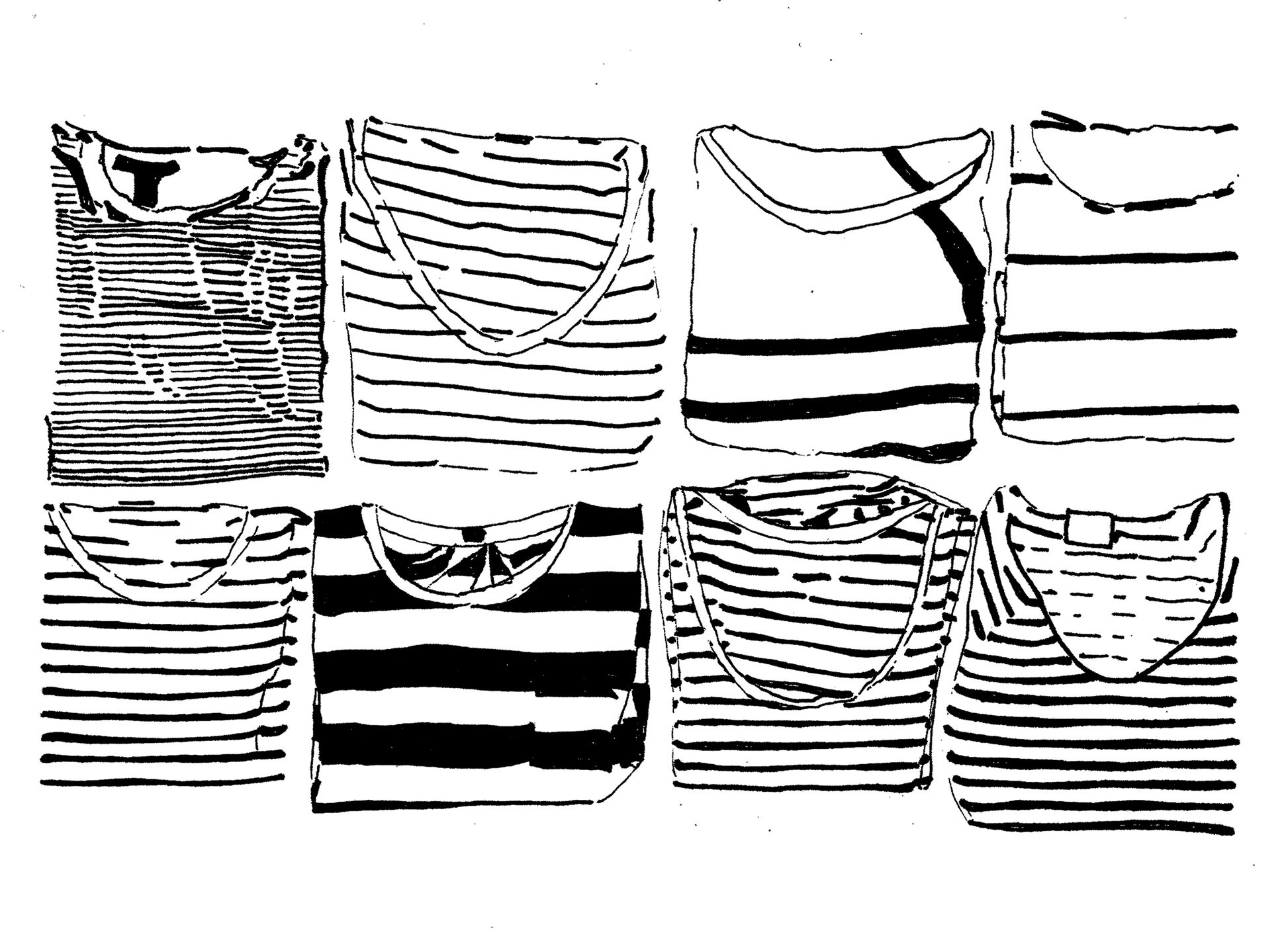 A drawing of folded stripe shirts