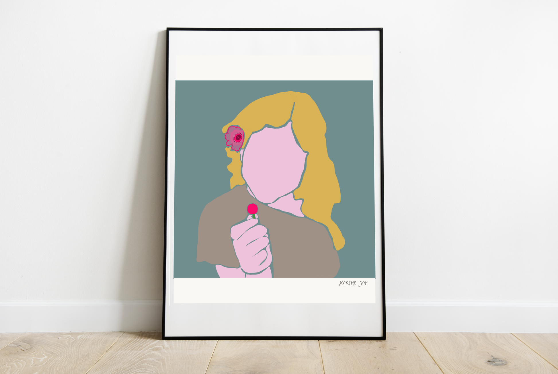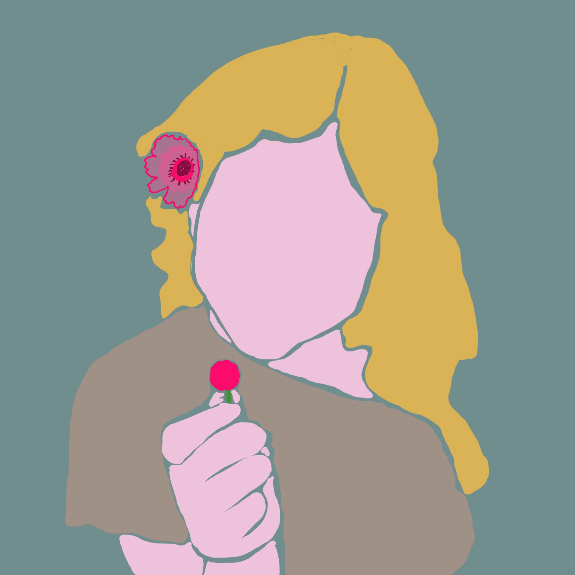 An illustration of a graphic color block shapes of a girls face- Lynn