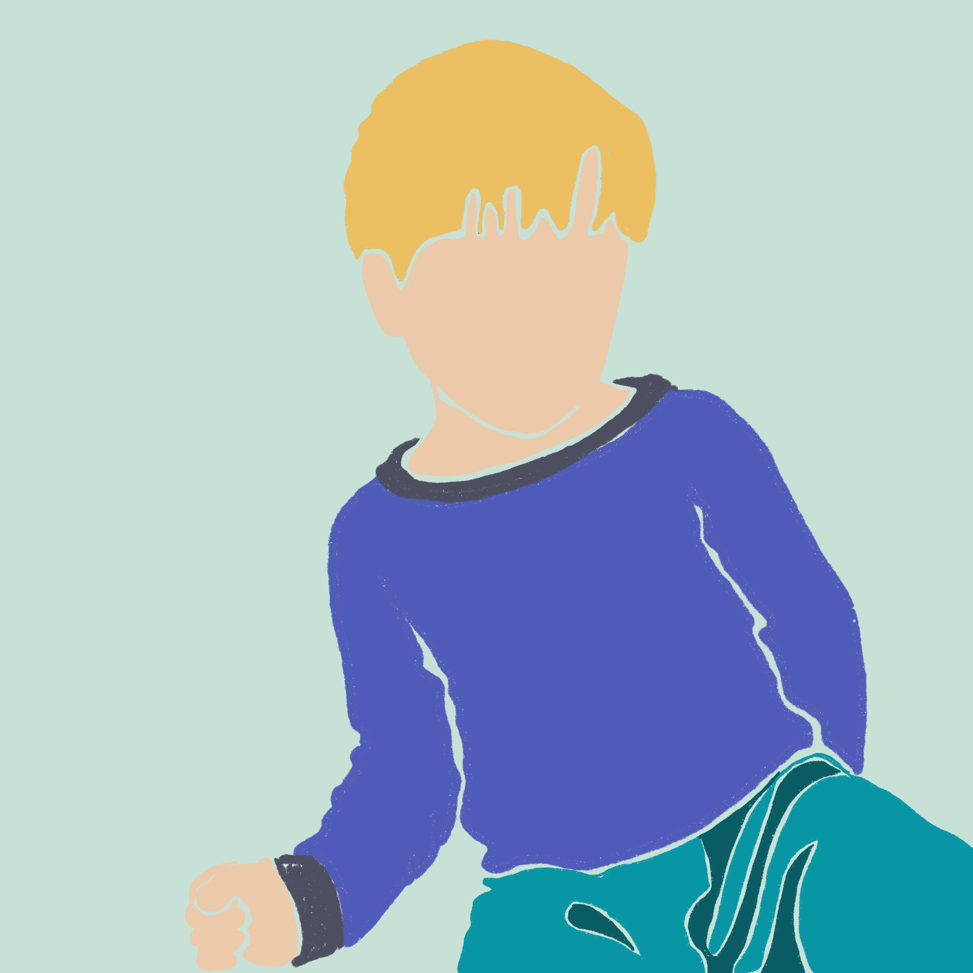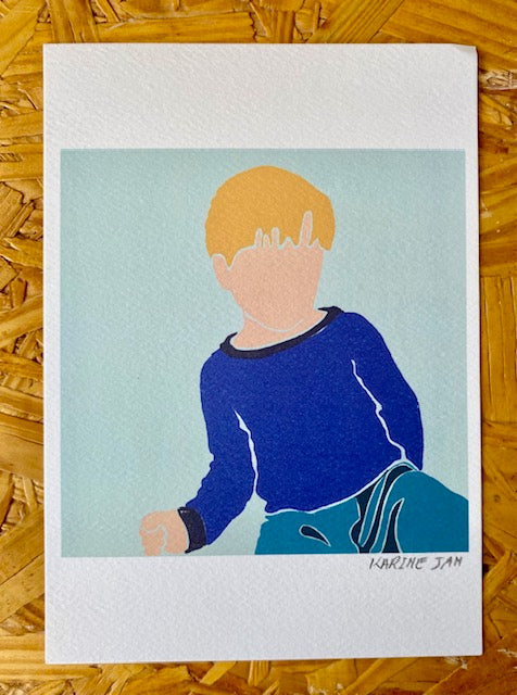 An illustration of color block graphic shapes - a boy- Ollie