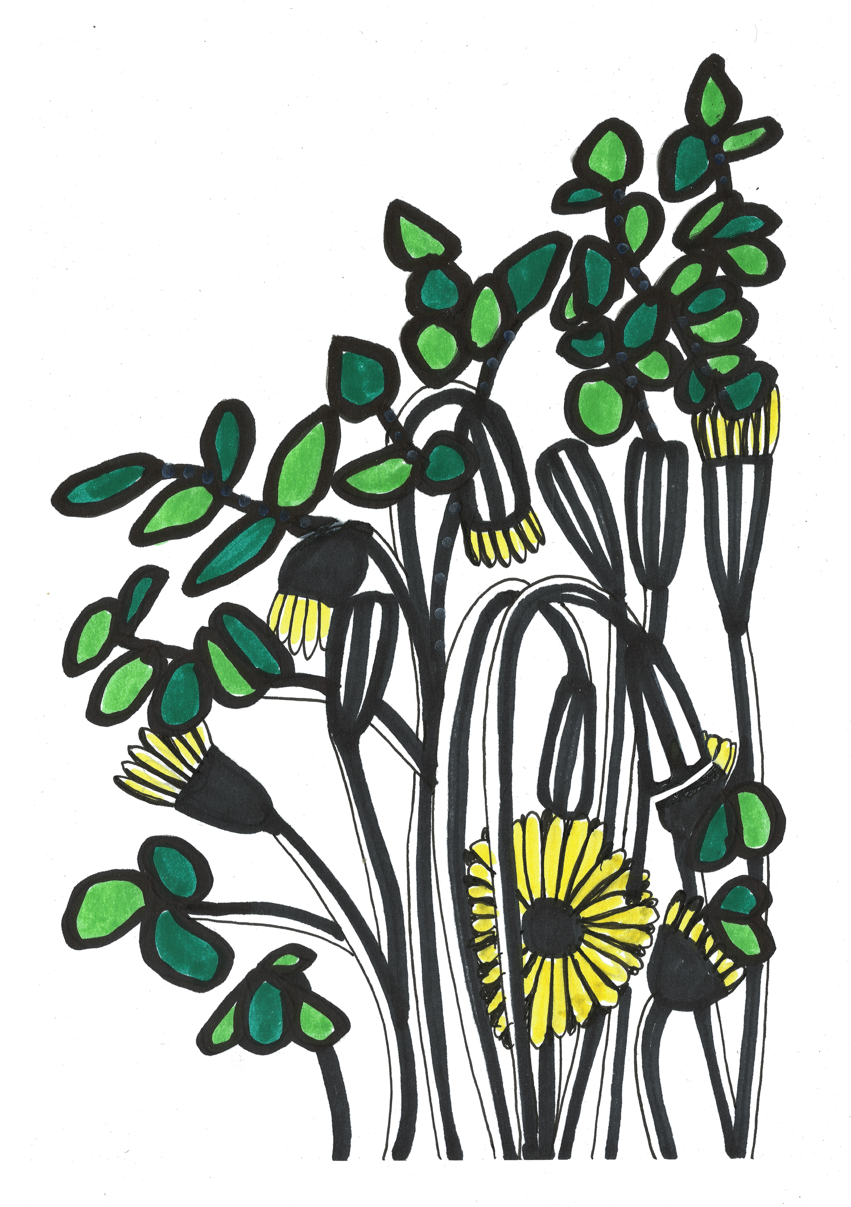 A drawing of dandelions